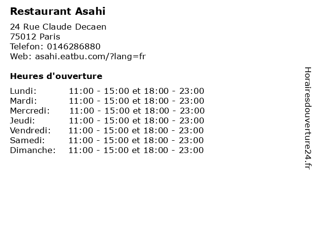 | Samedi | 11:00-15:00 et 18:00-23:00 |
