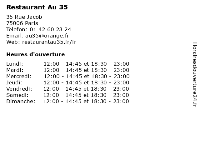 | Mardi | 12:00-14:45 et 18:30-23:00 |