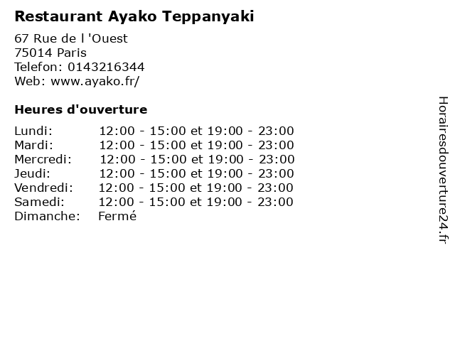 | Vendredi | 12:00-15:00 et 19:00-23:00 |