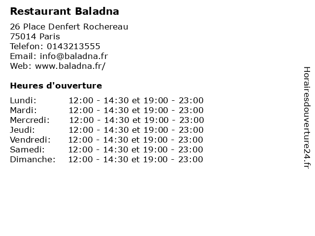 | Dimanche | 12:00-14:30 et 19:00-23:00 |