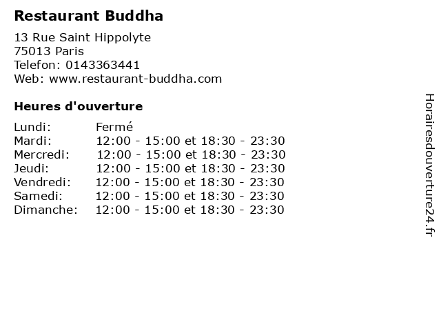 | Dimanche | 12:00-15:00 et 18:30-23:30 |