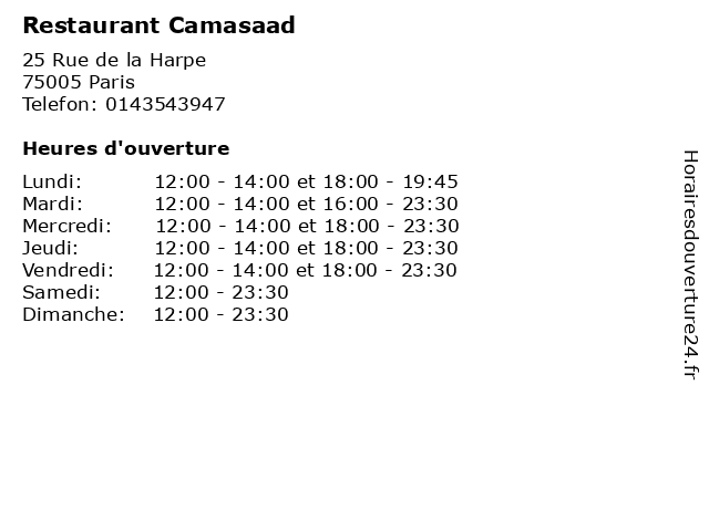 | Mardi | 12:00-14:00 et 16:00-23:30 |