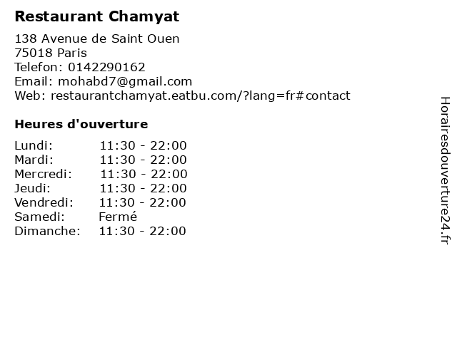 | Jeudi | 11:30-22:00 |