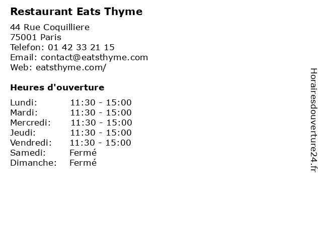 Termes de recherche pour Restaurant Eats Thyme:restauration, restaurant, thym, thyme, eats |