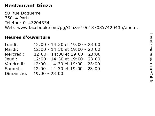 | Samedi | 12:00-14:30 et 19:00-23:00 |