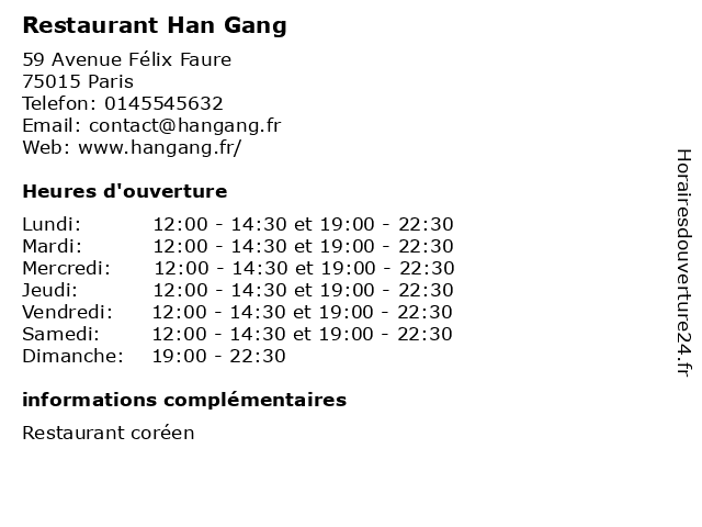 | Jeudi | 12:00-14:30 et 19:00-22:30 |