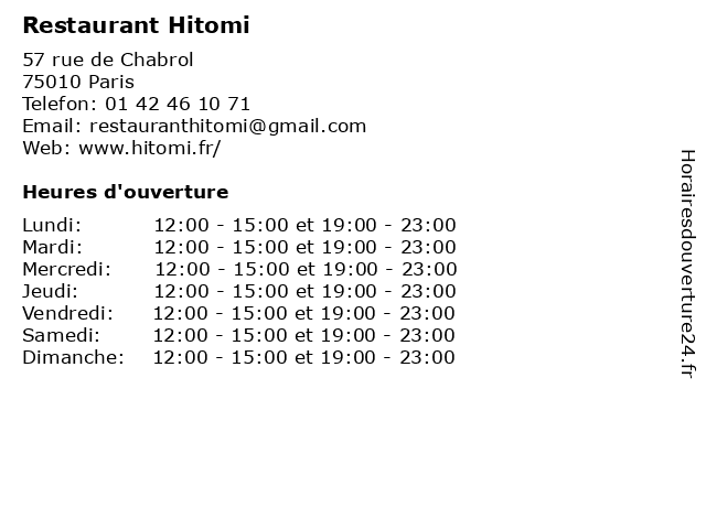 | Dimanche | 12:00-15:00 et 19:00-23:00 |