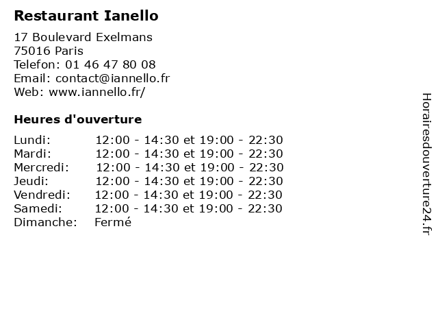 | Lundi | 12:00-14:30 et 19:00-22:30 |