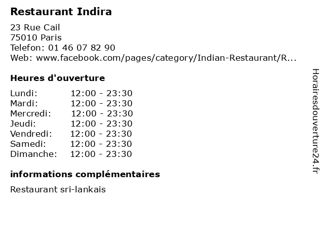 1 Maître Indira Zeenni - Avocate (Distance: 4,01 km) 75 Avenue des Champs-Élysées, 75008 Paris avocat, avocate, droit, indira, maître, négociation, zeenni 2 Indira (Distance: 13,84 km) 20 Place John Fitzgerald Kennedy, 94100 St Maur Des Fosses indira, restaurants 3 Dishny (Distance: 0,02 km) 212 Rue du Faubourg Saint-Denis, 75010 Paris alimentation, brasserie, dishny, parking, restaurant, terrasse 4 Chettinadu Restaurant (Distance: 0,05 km) 15 Rue Cail, 75010 Paris bar, bistro, bistrot, brasserie, café, chettinadu, restaurant, restauration 5 Hotel Faubourg (Distance: 0,10 km) 216-224 Rue du Faubourg Saint-Denis, 75010 Paris bar, chambres, faubourg, hotel, restaurant, service 6 Mathura (Distance: 0,11 km) 6 Rue Cail, 75010 Paris bar, bistro, bistrot, brasserie, café, mathura, pub, restaurant, restauration, resto |