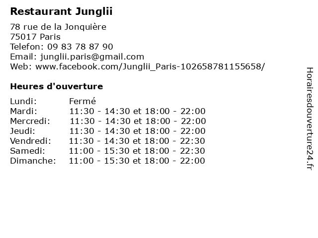 | Dimanche | 11:00-15:30 et 18:00-22:00 |