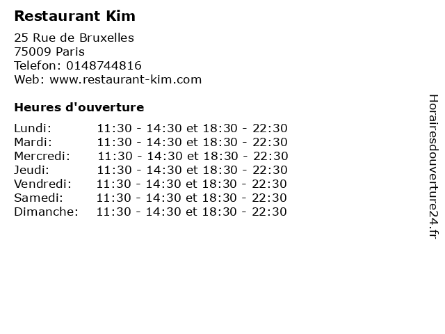 | Samedi | 11:30-14:30 et 18:30-22:30 |