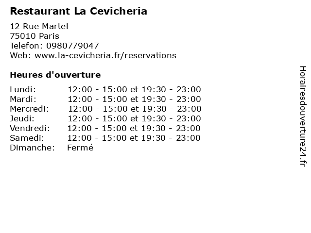 | Vendredi | 12:00-15:00 et 19:30-23:00 |