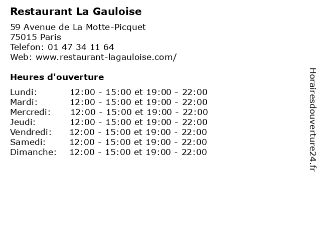 | Dimanche | 12:00-15:00 et 19:00-22:00 |