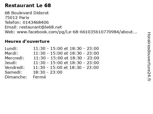 | Lundi | 11:30-15:00 et 18:30-23:00 |
