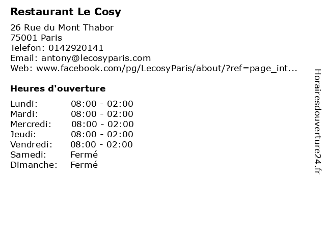 | Samedi | Fermé |