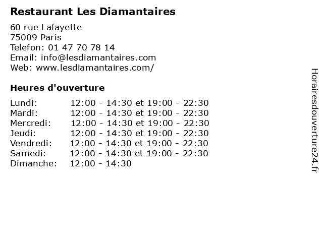 | Jeudi | 12:00-14:30 et 19:00-22:30 |