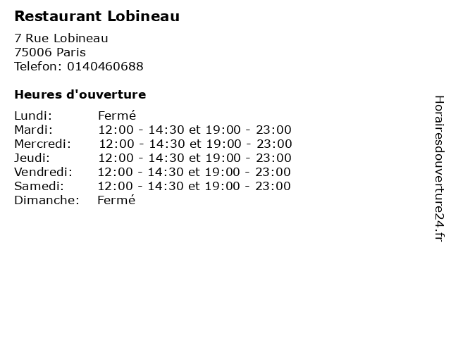 Samedi | 12:00-14:30 et 19:00-23:00 |