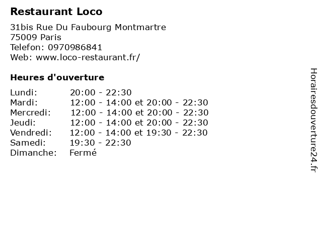 | Vendredi | 12:00-14:00 et 19:30-22:30 |