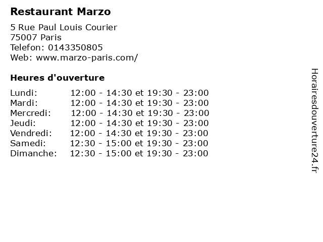 | Mardi | 12:00-14:30 et 19:30-23:00 |