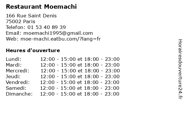 | Samedi | 12:00-15:00 et 18:00-23:00 |