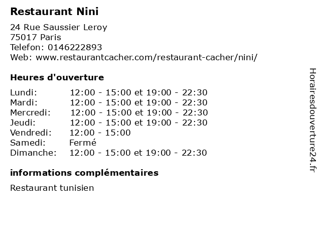 | Dimanche | 12:00-15:00 et 19:00-22:30 |