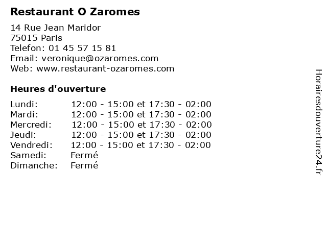 | Vendredi | 12:00-15:00 et 17:30-02:00 |