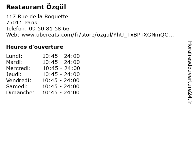 | Lundi | 10:45-24:00 |