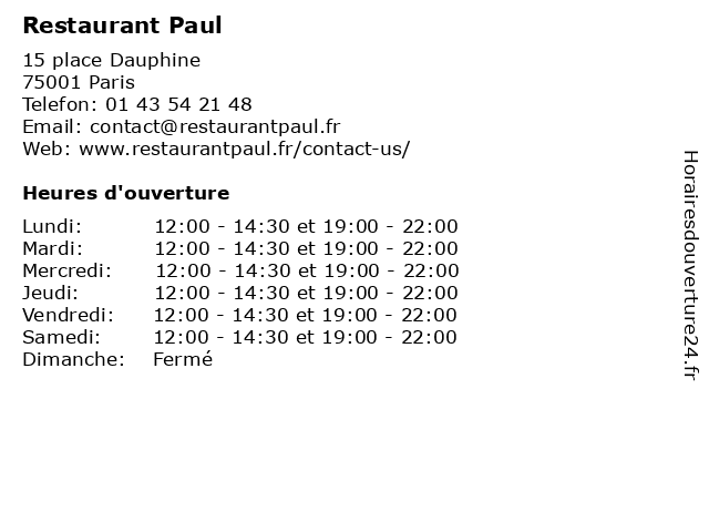 | Mardi | 12:00-14:30 et 19:00-22:00 |