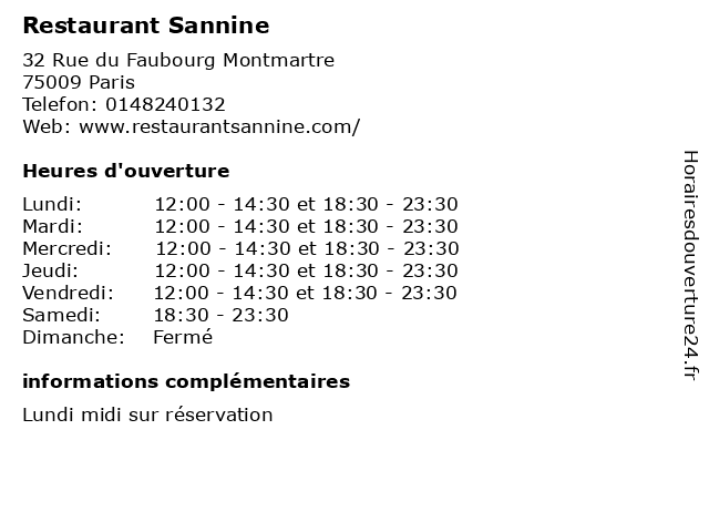 | Mardi | 12:00-14:30 et 18:30-23:30 |