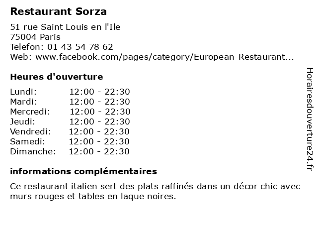 1 Sorza Restaurant (Distance: 0,00 km) 51 Rue Saint Louis En l'Île, 75004 Paris bar, bistro, bistrot, brasserie, café, pub, restaurant, restauration, resto, sorza 2 Restaurant Italien Tra Amici (Distance: 2,11 km) 110 rue Léon-Maurice Nordmann, 75013 Paris 13ème amici, boisson, italien, nourriture, restaurant, service, tra 3 Centre d'animation Victor Gelez / Italien (Distance: 2,46 km) 1-3 rue Victor Gelez, 75011 Paris centre, centres d'animation, d'animation, equipement, gelez, italien, jardins, l'heure, livre, médiathèque, services, victor 4 Restaurant Le Den (Distance: 3,70 km) 167 rue de Grenelle, 75007 Paris boisson, den, italien, le, nourriture, restaurant, service 5 Il Piccolino Restaurant (Distance: 4,04 km) 10 Rue de Constantinople, 75008 Paris il, italien, piccolino, restaurant, végétarien 6 Baffo- Restaurant Italien (Distance: 4,45 km) 31 av. George V, 75008 Paris baffo, dessert, food, italien, restaurant |