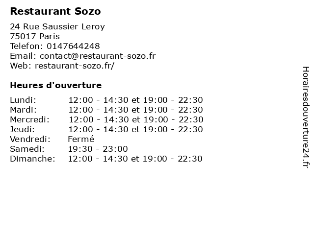 | Dimanche | 12:00-14:30 et 19:00-22:30 |