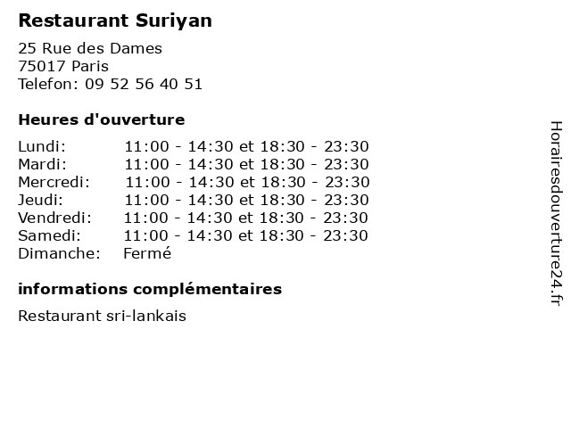 | Lundi | 11:00-14:30 et 18:30-23:30 |