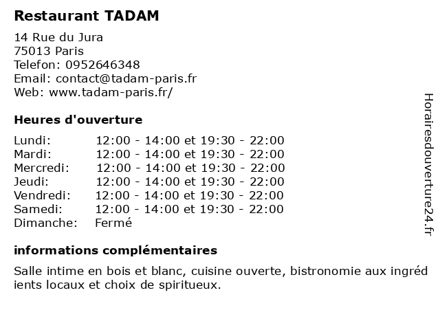 Termes de recherche pour Restaurant TADAM:restauration, restaurant, café, bar, bistrot, brasserie, bistro, tadam |