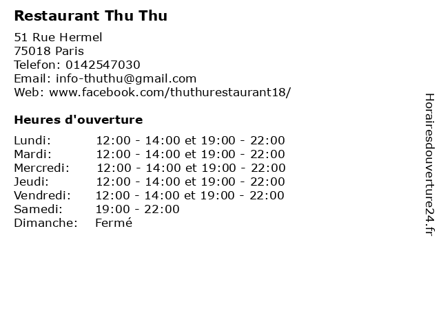 | Jeudi | 12:00-14:00 et 19:00-22:00 |