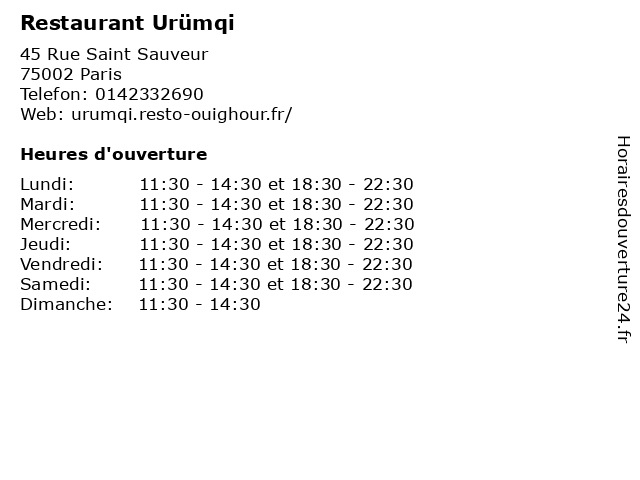 | Samedi | 11:30-14:30 et 18:30-22:30 |