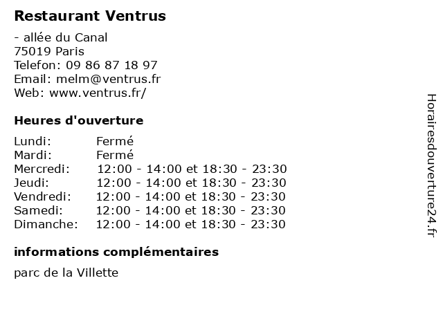 | Dimanche | 12:00-14:00 et 18:30-23:30 |