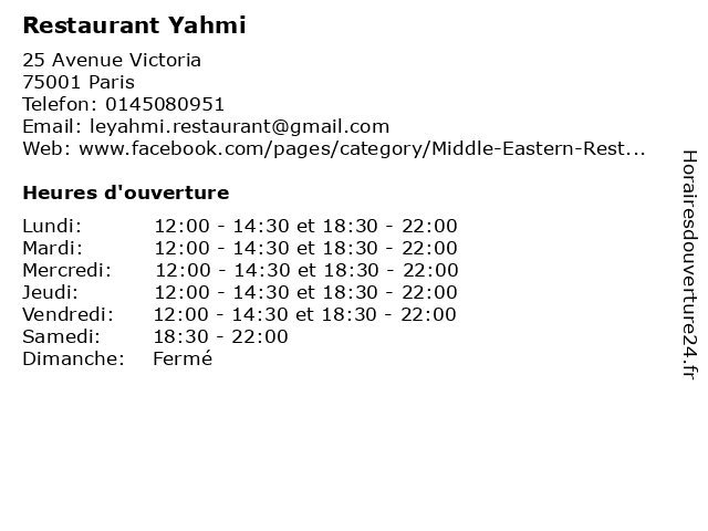| Vendredi | 12:00-14:30 et 18:30-22:00 |
