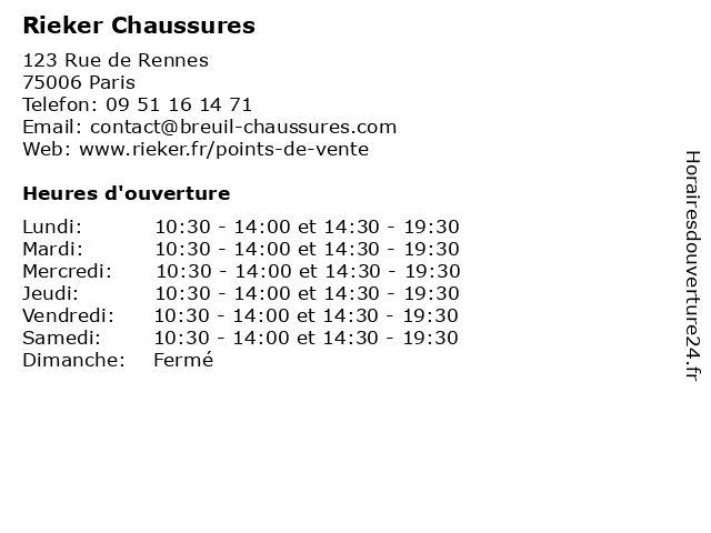 1 Rieker Chaussures (Distance: 2,05 km) 90 Rue d'Alésia, 75014 Paris boutique, chaussures, collections, mode, prêt à porter, rieker 2 Rieker Chaussures (Distance: 2,27 km) 39 Avenue des Gobelins, 75013 Paris boutique, chaussures, collections, mode, prêt à porter, rieker 3 Rieker Chaussures (Distance: 2,93 km) 278 Rue de Vaugirard, 75015 Paris boutique, chaussures, collections, mode, prêt à porter, rieker 4 GEMO PARIS - RUE DE RENNES Chaussures et Vêtements (Distance: 0,23 km) 104 Rue de Rennes, 75006 Paris bijoux et accesoires, chaussures, de, et, gemo, lingerie, magasin bébé, maroquinerie, mode et habillement, paris, rennes, rue, vêtements, vêtements bébé, vêtements enfant, vêtements femme, vêtements homme 5 Rautureau Chaussures (Distance: 0,46 km) 24 rue de Sèvres, 75007 Paris accessoires, chaussures, femme, homme, magasin, rautureau 6 Rautureau Chaussures (Distance: 0,58 km) 24 rue de Grenelle, 75007 Paris accessoires, chaussures, femme, homme, magasin, rautureau |