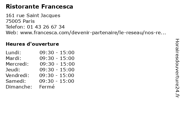 1 Ristorante Francesca (Distance: 2,58 km) 9 rue Monsigny, 75002 Paris café, francesca, restaurant, ristorante, un bistro 2 Ristorante Francesca (Distance: 2,80 km) 20 boulevard Poissonnière, 75009 Paris café, francesca, restaurant, ristorante, un bistro 3 Ristorante Francesca (Distance: 3,69 km) 112 rue du Faubourg Poissonnière, 75010 Paris café, francesca, restaurant, ristorante, un bistro 4 Ristorante Francesca (Distance: 4,05 km) 63 Avenue de Fontainebleau, 94270 Le Kremlin-Bicêtre café, francesca, italien, pizzas, pizzeria, restaurant, restauration, ristorante 5 Ristorante Francesca (Distance: 6,62 km) 1 Avenue Louis Aragon, 94800 Villejuif café, francesca, italien, pizzas, pizzeria, restaurant, restauration, ristorante 6 Ristorante Francesca (Distance: 9,42 km) 32 Passage de l'Arche, 92800 Puteaux café, francesca, restaurant, ristorante, un bistro |