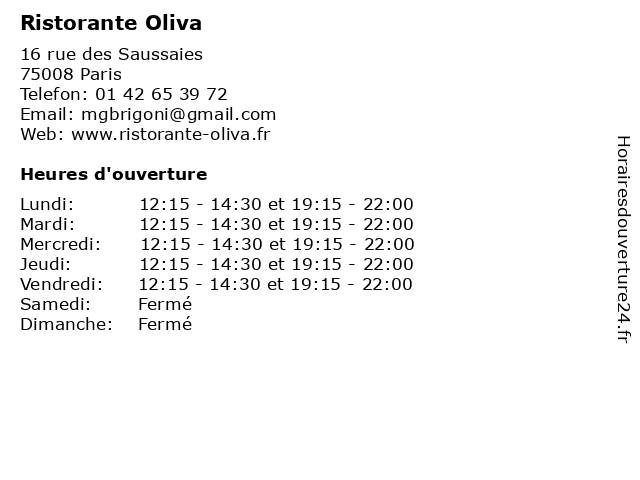 | Samedi | Fermé |