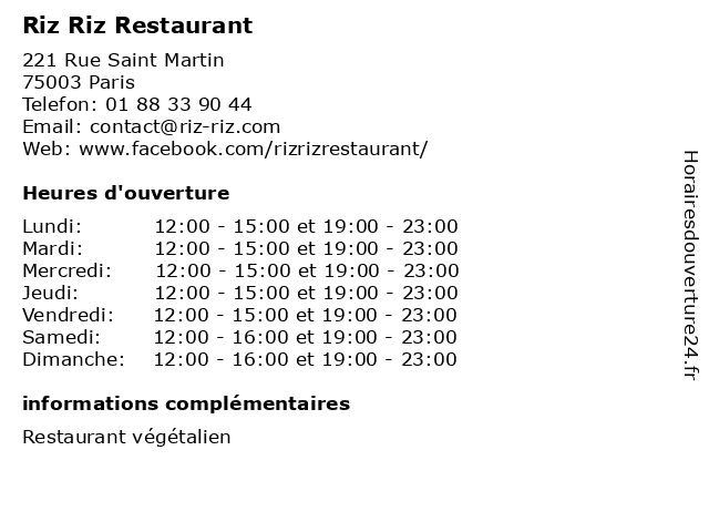 | Dimanche | 12:00-16:00 et 19:00-23:00 |