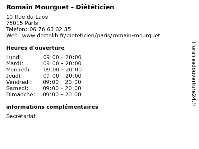 1 Romain Vergnol - Masseur-kinésithérapeute (Distance: 0,06 km) 51 Avenue de la Motte-Picquet, 75015 Paris kinésithérapeute, masseur, médecin, médecine, médical, pharmaceutique, romain, secretariat, traitement, vergnol 2 Tracey Darrousez - Diététicien (Distance: 0,63 km) 7 Rue Fallempin, 75015 Paris cabinet, darrousez, diététicien, diététique, medical, secrétariat, tracey 3 Laura Sanchez - Diététicien (Distance: 0,80 km) 21 Avenue de la Motte-Picquet, 75007 Paris cabinet, diététicien, diététique, laura, medical, sanchez, secrétariat 4 Romain Petraud - Psychologue (Distance: 1,15 km) 7 bis Rue Bausset, 75015 Paris folie, petraud, psychiatre, psychiatrie, psychiatrique, psychologue, romain 5 Aurélie Thomas-Escourbiac - Diététicien (Distance: 1,17 km) 38 Bis Rue des Entrepreneurs, 75015 Paris aurélie, cabinet, diététicien, diététique, escourbiac, medical, secrétariat, thomas 6 Anahita Mohtadji - Diététicien (Distance: 1,99 km) 22 Rue Georges Bizet, 75116 Paris anahita, cabinet, diététicien, diététique, medical, mohtadji, secrétariat |