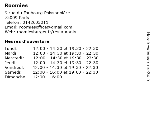1 Roomies (Distance: 0,91 km) 14 rue du Cygne, 75001 Paris burger, frites, livraison, restaurants, roomies, salades 2 Roomies (Distance: 2,43 km) 6 avenue Percier, 75008 Paris burger, frites, livraison, restaurant, roomies 3 Roomies Bonne Nouvelle (Distance: 0,60 km) 9 Rue du Faubourg Poissonnière, 75009 Paris bonne, burger, cuisine, livraison, nouvelle, repas, restaurant, roomies 4 McDonald's Paris Bonne Nouvelle (Distance: 0,07 km) 2 Boulevard Poissonnière, 75009 Paris bonne, burgers, fast, food, hamburgers, mcdonald's, nouvelle, paris, rapide, restaurant, restauration 5 Fg Burgers (Distance: 0,39 km) Faubourg Burgers, 78114 Magny Les Hameaux burgers, fg, french, grilled, restaurants 6 Bistro Burger (Distance: 0,47 km) 15 Boulevard Montmartre, 75002 Paris bistro, boisson, burger, frites, montmartre, restaurant |