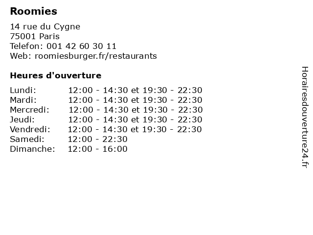 | Mercredi | 12:00-14:30 et 19:30-22:30 |