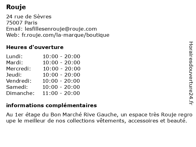 1 Rouje (Distance: 1,55 km) 9 Rue de la Monnaie, 75001 Paris accessoires, beauté, jupes, rouje, vêtement 3 Maje (Distance: 0,00 km) 24 rue de Sèvres, 75007 Paris accessoires, habillements, maje, mode, vêtement 4 kenzo / Le Bon Marche (Distance: 0,01 km) 24 Rue de Sèvres, 75007 Paris accessoires, bon, chemises, enfants, hommes, jupes, kenzo, le, manteaux, marche, pantalons, pour femmes, robes, sweatshirts, t-shirts et tops, tricots 5 kenzo (Distance: 0,59 km) 60-62 Rue de Rennes, 75006 Paris accessoires, chemises, enfants, hommes, jupes, kenzo, manteaux, pantalons, pour femmes, robes, sweatshirts, t-shirts et tops, tricots 6 kenzo (Distance: 2,02 km) 3 Place des Victoires, 75001 Paris accessoires, chemises, enfants, hommes, jupes, kenzo, manteaux, pantalons, pour femmes, robes, sweatshirts, t-shirts et tops, tricots |