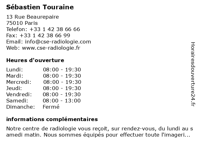1 Sébastien Lamotte - Psychologue (Distance: 0,86 km) 32 Rue Pastourelle, 75003 Paris lamotte, medecin, psycho, psychologue, psychomotricienne, sante, sébastien 2 ALJT Saint Sébastien (Distance: 1,03 km) 136 bis passage Saint-Sébastien, 75011 Paris aljt, foyer, jeunes, saint, sébastien, travailleur, éducativ 3 Laboratoire d'Analyses Médicales Saint-Sébastien (Distance: 1,09 km) 2 Boulevard des Filles du Calvaire, 75003 Paris analyse, bioclinic, centre, d'analyses, laboratoire, medical, médicales, saint, sébastien 4 Dr Sébastien Barbaroux - Médecin généraliste (Distance: 1,09 km) 5 Rue Saint-Sébastien, 75011 Paris barbaroux, docteur, dr, generaliste, généraliste, medical, médecin, soin, sébastien 5 École élémentaire application St Sébastien (Distance: 1,10 km) 24 Saint Sébastien, 75011 Paris application, cours, servicios, st, sébastien, école, élémentaire 6 Sébastien Chevrier-Mahaudeau - Hypnothérapeute (Distance: 1,13 km) 58 Rue de Cléry, 75002 Paris chevrier, hypno, hypnose, hypnothérapeute, mahaudeau, sante, sébastien |