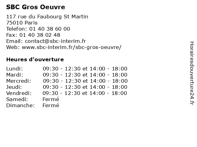 2 CRIT PARIS BTP 2nd oeuvre (Distance: 0,62 km) 1 Rue de l'Aqueduc, 75010 Paris 2nd, btp, crit, oeuvre, paris 3 CRIT PARIS BTP Gros oeuvre - Ferroviaire (Distance: 0,62 km) 103 Boulevard de Magenta, 75010 Paris btp, crit, ferroviaire, gros, oeuvre, paris 4 SBC Grande Distribution (Distance: 1,17 km) 36 rue de Malte, 75011 Paris agence, distribution, emplois, grande, job, professionnelle, qualifications, recherche, sbc 5 Dr Julien Gros - Dentiste (Distance: 1,29 km) 11 Boulevard du Temple, 75003 Paris care, clinic, dentiste, dr, gros, julien, medecin 6 Maître Adrien Gros - Avocat (Distance: 3,74 km) 171 Boulevard Haussmann, 75008 Paris adrien, avocat, droit, gros, maître, négociation |