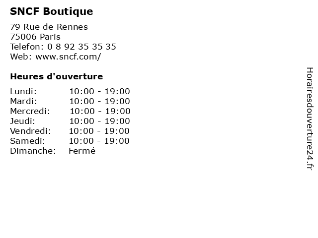 1 SNCF Boutique (Distance: 2,36 km) 2 Rue Chauveau Lagarde, 75008 Paris boutique, services, sncf, voyages 4 SNCF Boutique (Distance: 5,82 km) 5 Place du 8 Mai 1945, 92300 Levallois Perret boutique, services, sncf, voyages 5 SNCF Boutique (Distance: 7,99 km) . Gare La Defense, 92092 La Defense boutique, services, sncf, voyages 6 SNCF Boutique (Distance: 8,88 km) 1 Place Jean Moulin, 94140 Maisons-Alfort boutique, services, sncf, voyages |