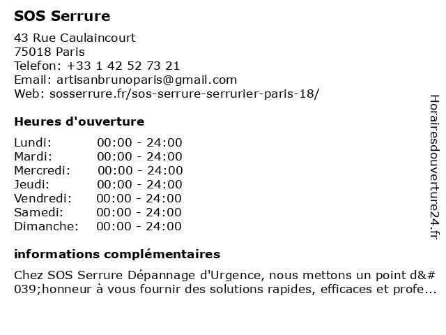 | Samedi | 00:00-24:00 |