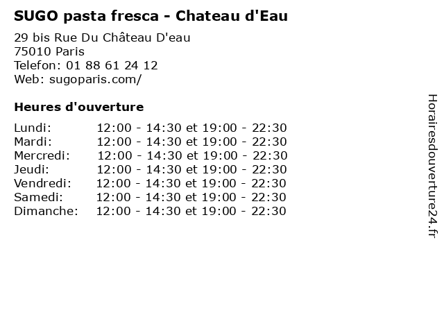 Termes de recherche pour SUGO pasta fresca - Chateau d'Eau:chateau, pasta, d'eau, restaurant italien, fresca, sugo, boutique de pâtes |